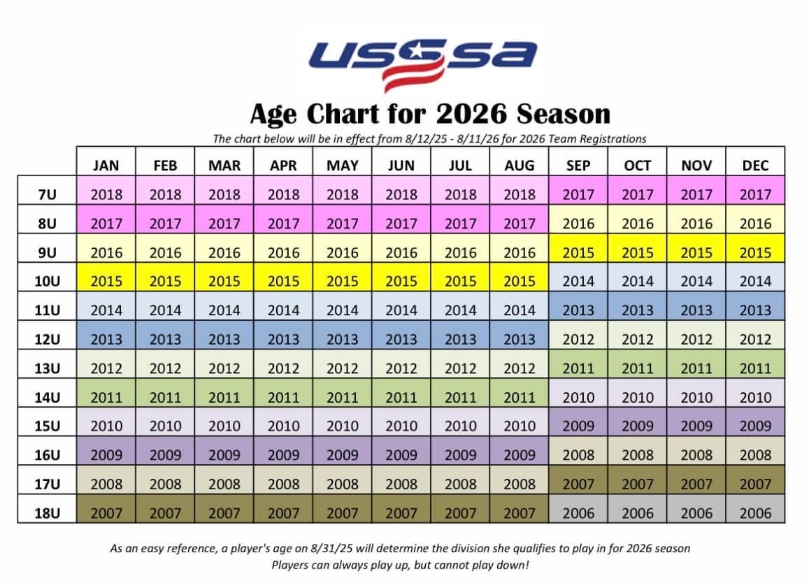 BPR Softball uses the USSSA age eligibility guidelines. Ages are calculated on December 31 for each season.