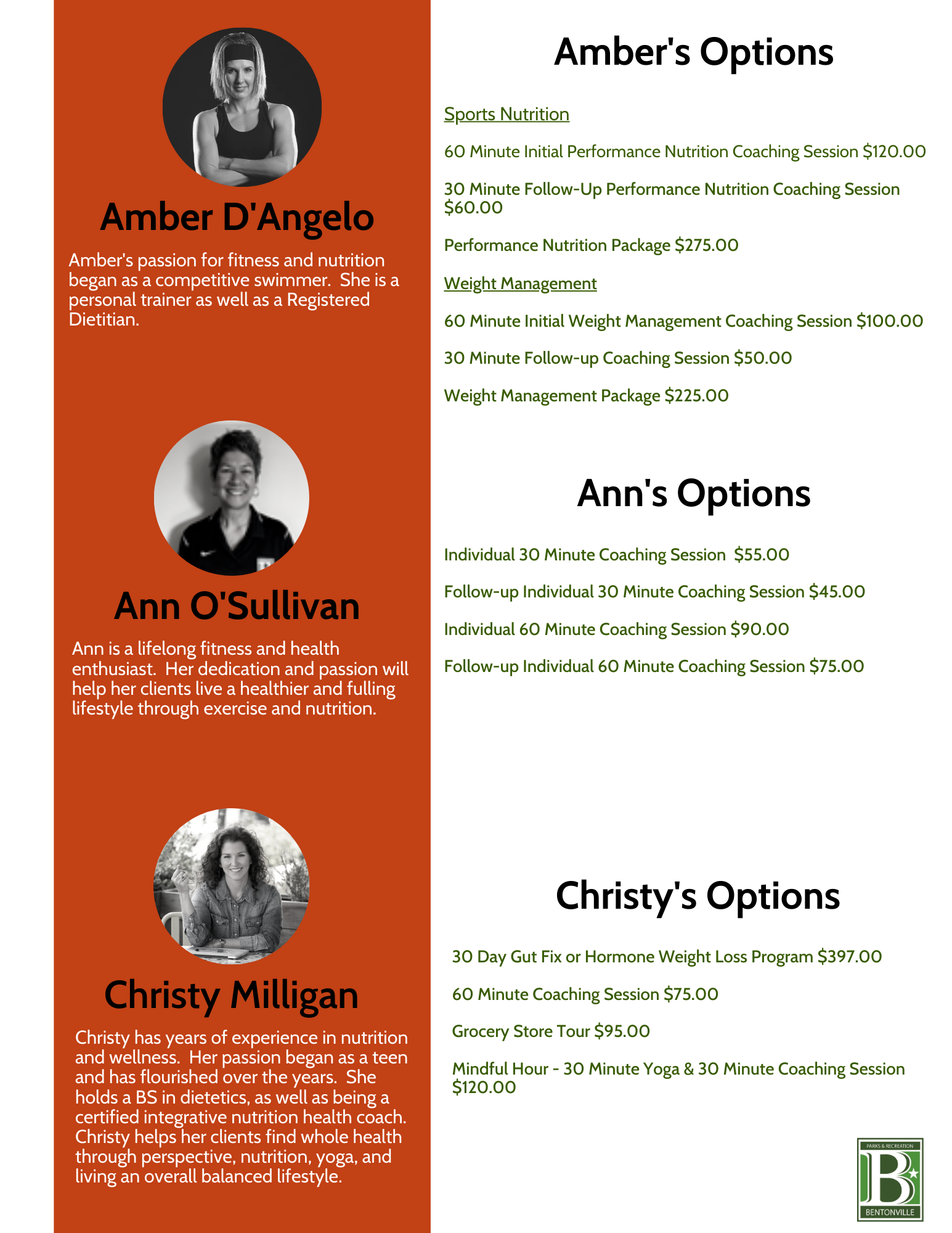 If you or someone you know is interested in working with a nutritionist, please contact us at bcc@bentonvillear.com to get paired up with a nutritionist today!