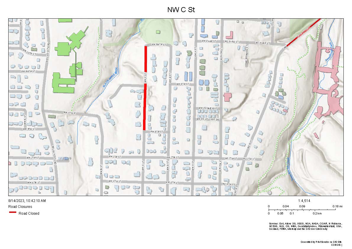 Bentonville, AR… NW C St between NW 8th St and NW 10th St will be closed between the hours of 7:30am and 4:30pm Monday through Friday, August, 15th – September 5th for utility construction.